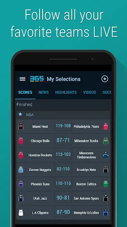 365Scores is a customized sports application . Whether you are a fan of football, tennis, rugby , basketball, hockey , handball, football, baseball, volleyball or cricket, 365Scores allows you to select your sports, favorite teams and competitions and to follow your own sports news ( results and standings live videos of the goals and best actions , statistics, mercato transfers).